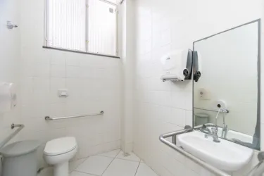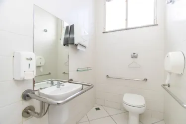 O acabamento é de alto padrão, com piso em porcelanato e ambientes climatizados com ar-condicionado, oferecendo conforto e praticidade para colaboradores e clientes.