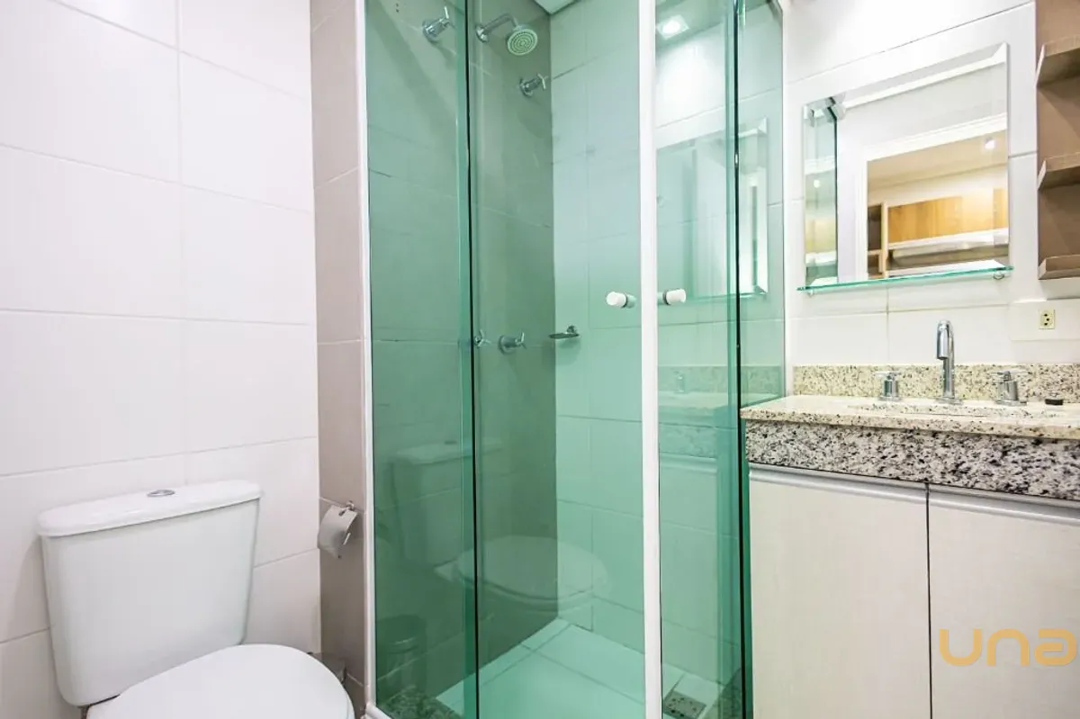 – Banheiro social com armário, box vidro temperado e espelho;