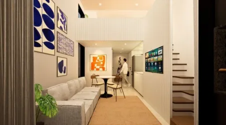 Apartamentos que Inspiram Liberdade Nossas unidades Studio e Studio Garden, de 18 a 26 m², foram projetadas para diferentes estilos de vida. Desde Studios com pé-direito duplo até unidades garden com áreas externas privativas, cada espaço oferece conforto, amplitude e praticidade. Com acabamentos de alta qualidade e tecnologia de automação residencial, seu novo lar é moderno e funcional.