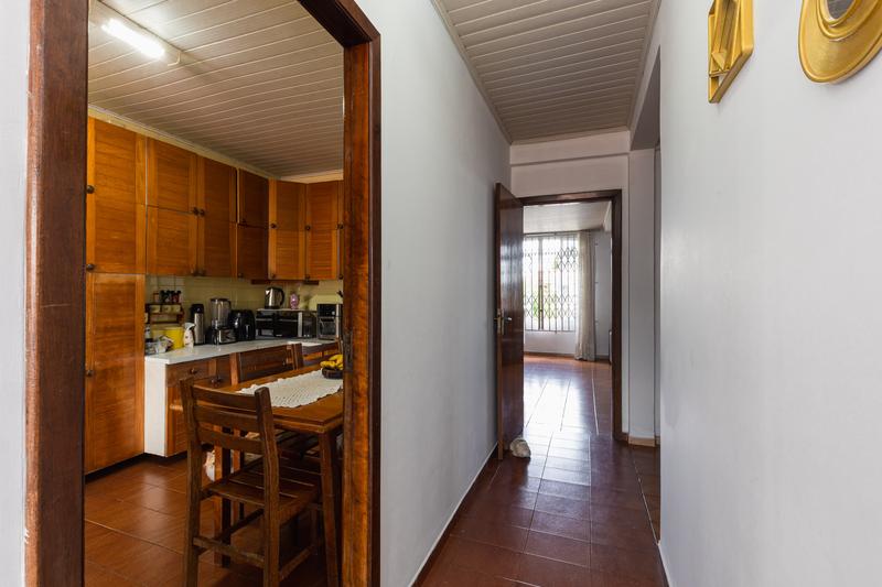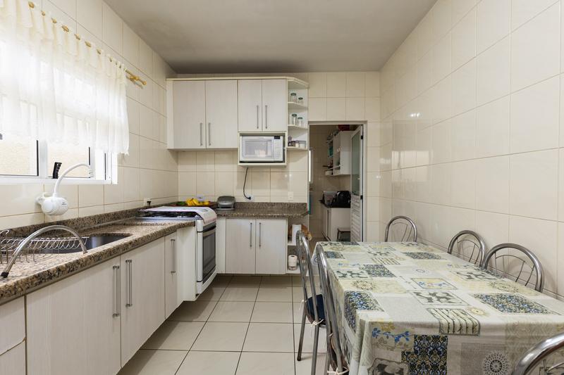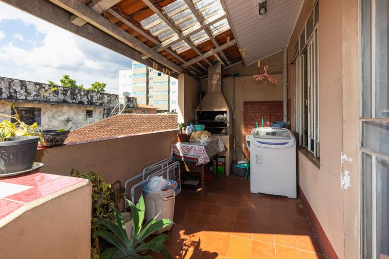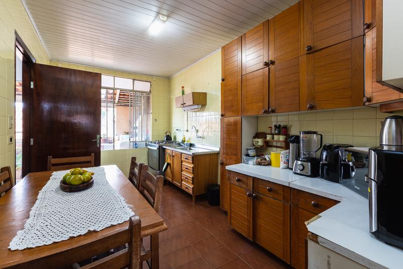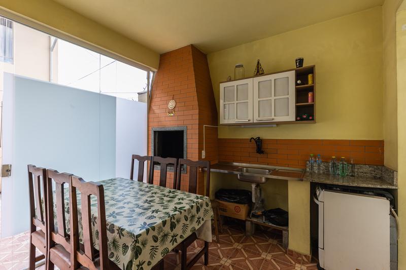 No fundo do terreno, uma casa de alvenaria com 95m² composta por: sala, 3 quartos, sendo uma suíte, cozinha e espaço com churrasqueira, uma vaga de garagem.
