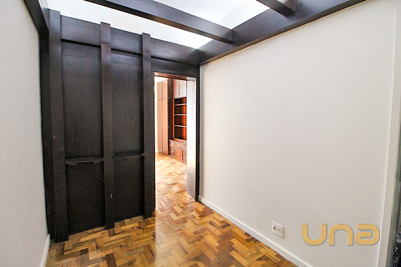 1 sala com armário embutido e lustre; 1 banheiro com espelho; 1 cozinha com pia inox; Piso taco.
