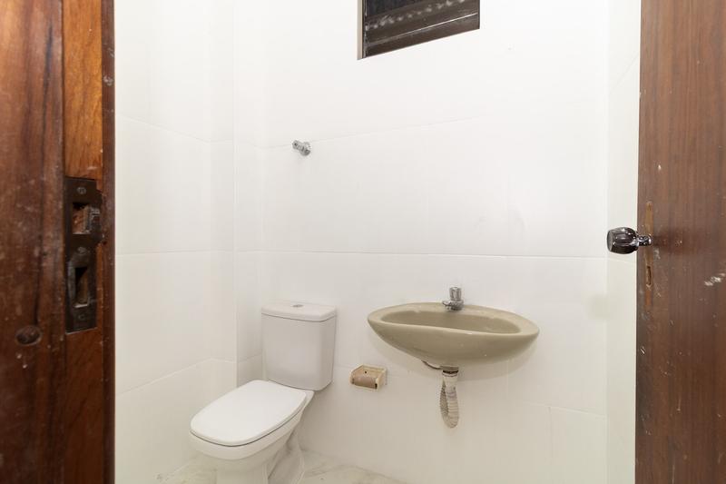 Banheiro completo, com vaso e pia, oferecendo praticidade para o dia a dia.
