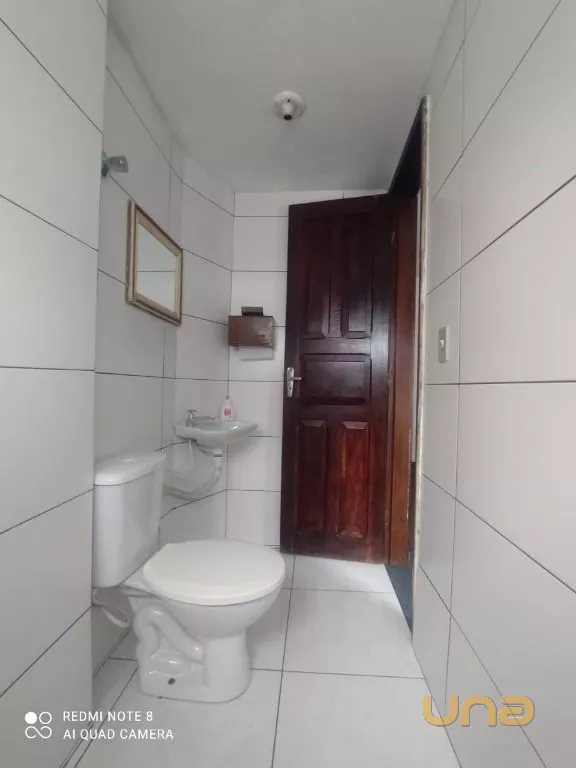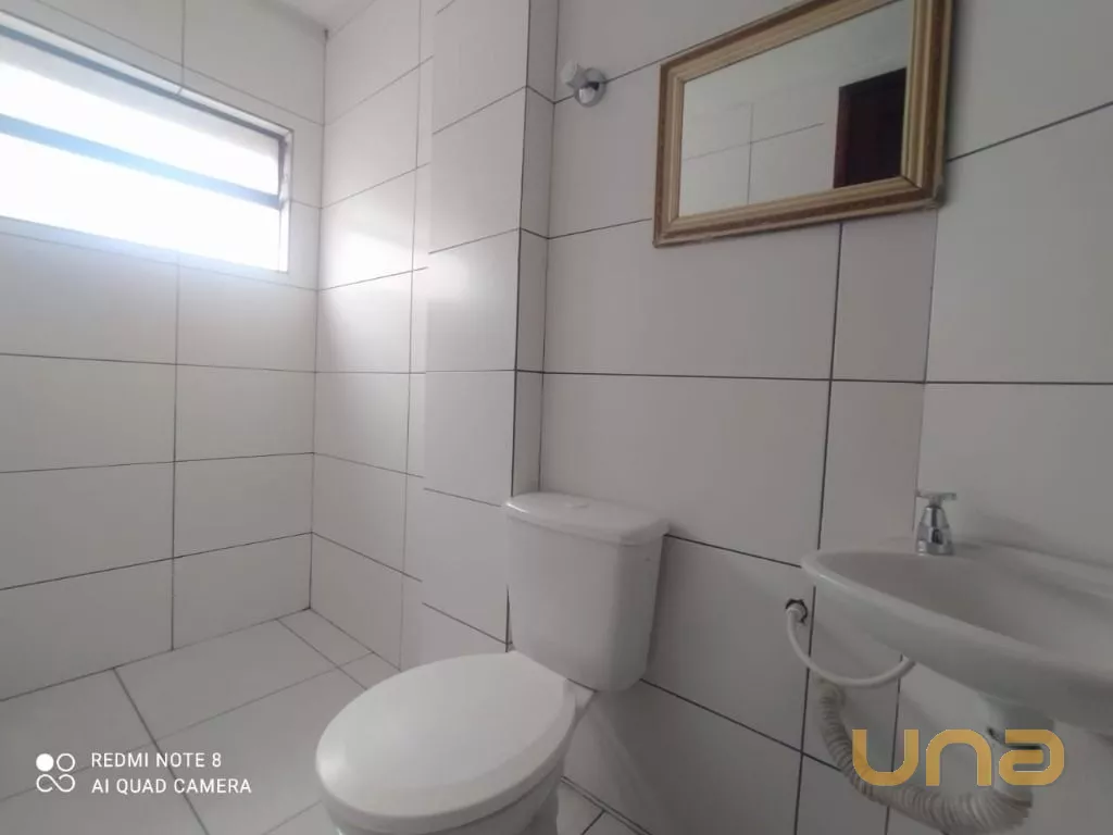 – Contendo 1 banheiro social com paredes azulejadas, piso em cerâmica, pequeno espelho e porta toalhas.