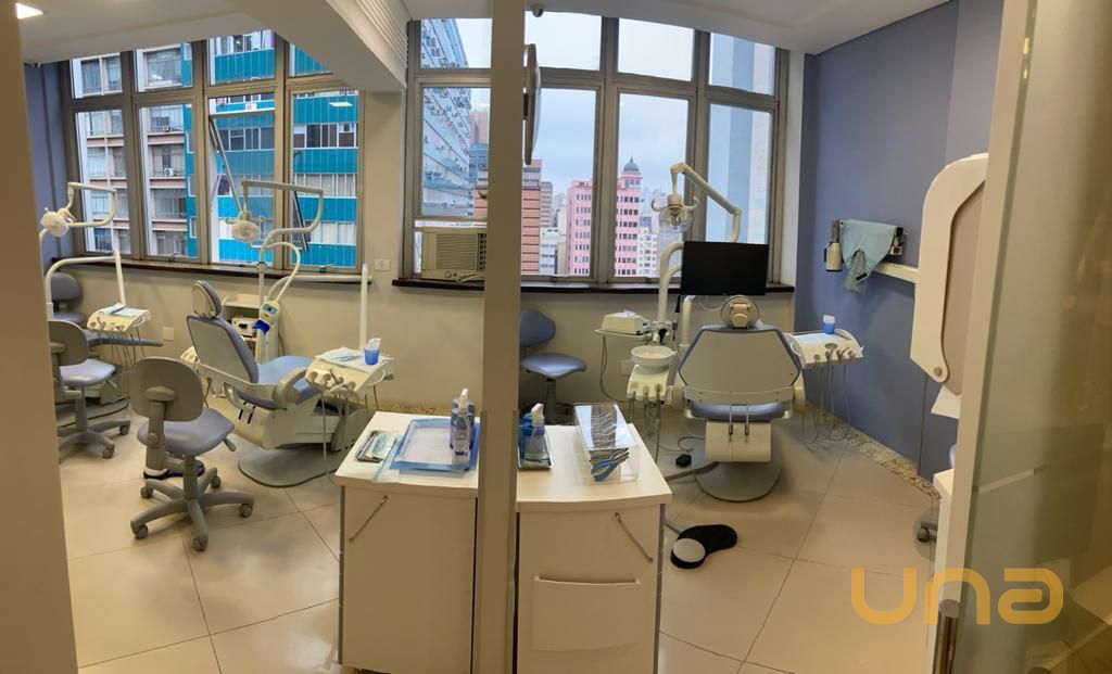 Salas Comerciais, adaptada para clínica odontológica no Centro de Curitiba, disponível para venda.