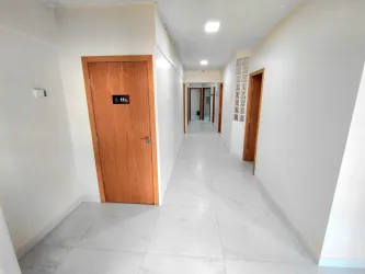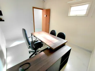 O espaço conta com seis salas independentes, sendo duas já equipadas com mesas e armários. Dispõe ainda de recepção mobiliada com mesa e cadeiras, três banheiros incluindo um adaptado com barras de apoio, todos com pia e tampo em granito, cozinha ampla com armários, pia em granito, geladeira e micro-ondas. A área de serviço com tanque e armários.