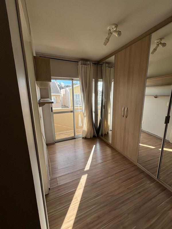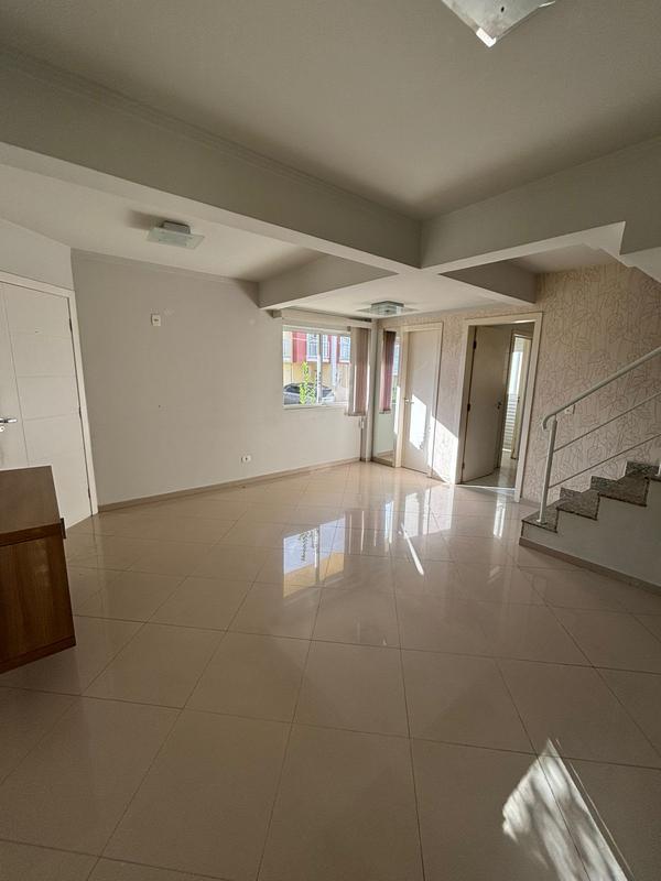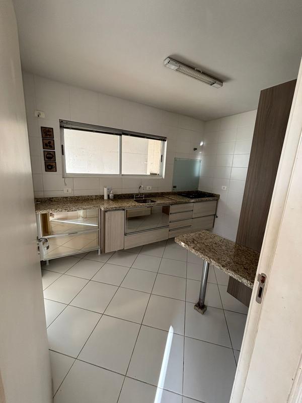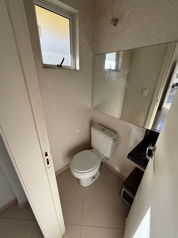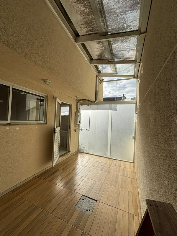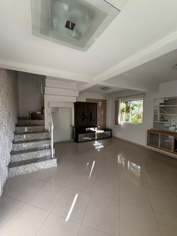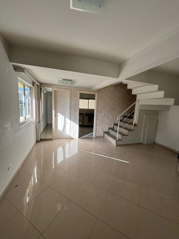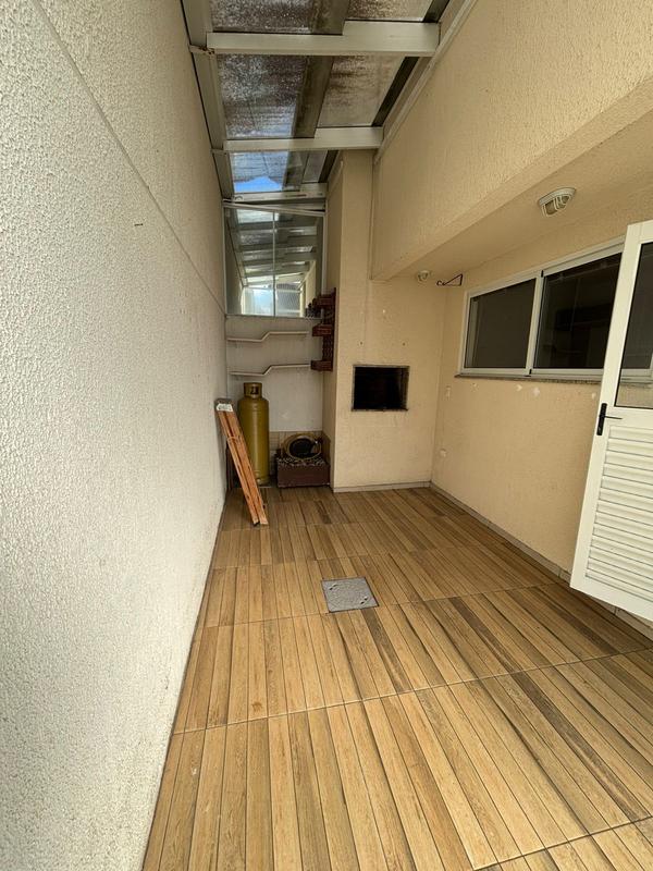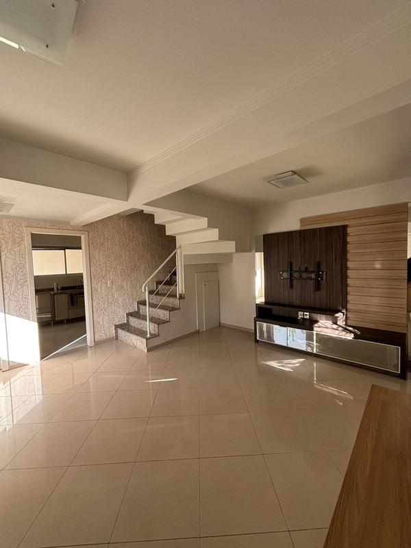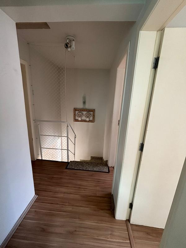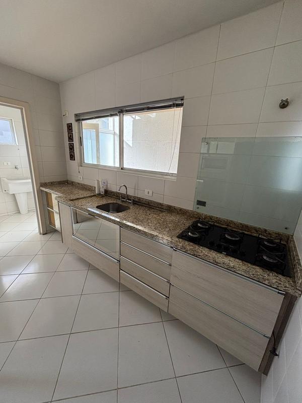 Sobrado de 3 quartos sendo uma suíte com armários e banheira, 1 banheiro social e um lavado, cozinha com armarios, cooktop, forno e micro-ondas, parte externa coberta com churrasqueira.