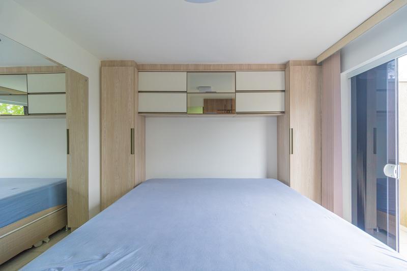– 3 Quartos, sendo um deles uma suíte com armários, cama box casal, e varanda, 1 deles com armário e espeço para cama de solteiro e outro vazio,