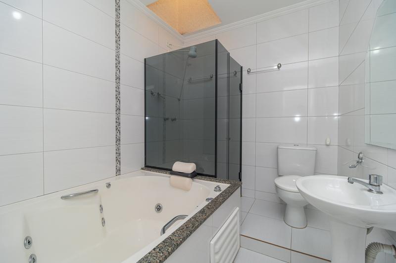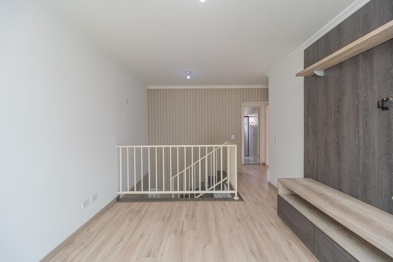 No piso superior, dispõe de sala de estar com rack e painel para TV, 3 dormitórios, sendo 2 com armários e 1 suíte com hidromassagem e box em vidro. Conta ainda com banheiro social com box em vidro e sacada.