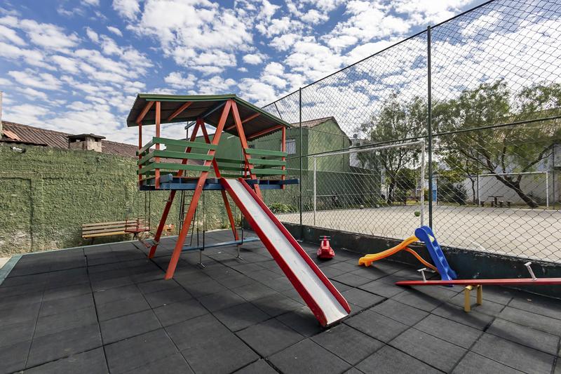 Condomínio com salão de festas, playground, quadra poliesportiva e áreas para descanso.