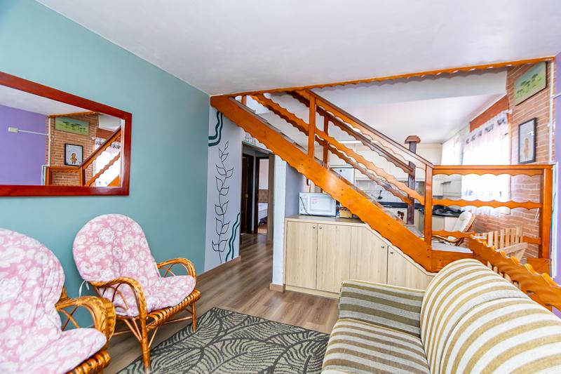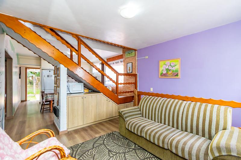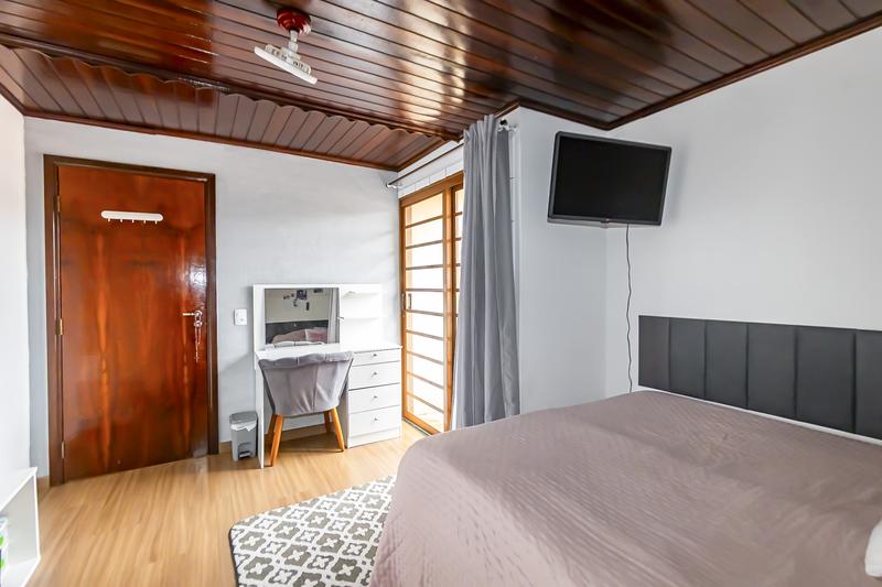 O imóvel conta com aproximadamente 200 m² de área construída, sendo no primeiro pavimento dois quartos sendo uma suíte, banheiro social, cozinha ampla com móveis planejados, sala de estar e lavanderia, e no subsolo possui um escritório e no ático possui uma sala de tv com sacada, além dois quartos.