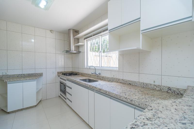 Cozinha com armários planejados, equipada com cooktop, coifa e forno embutido