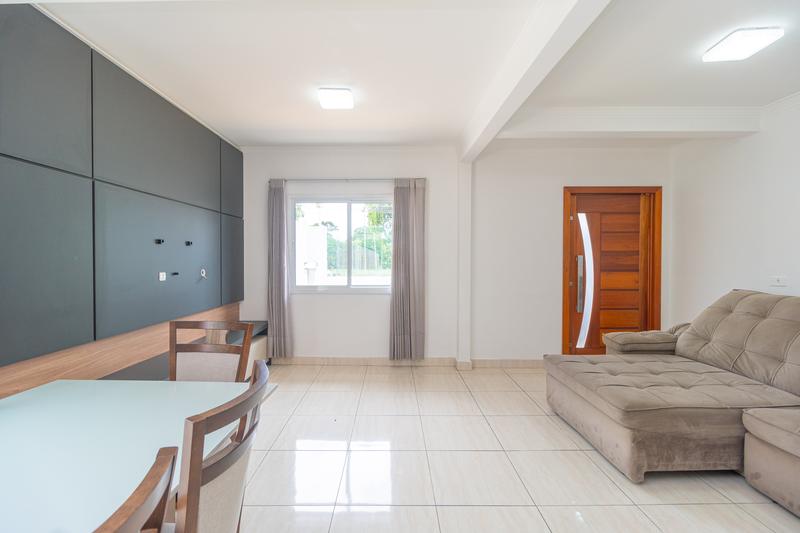 – Sala ampla para 2 ambientes, possui sofá retrátil, rack e painel para TV, mesa com 6 cadeiras e 1 lavabo,