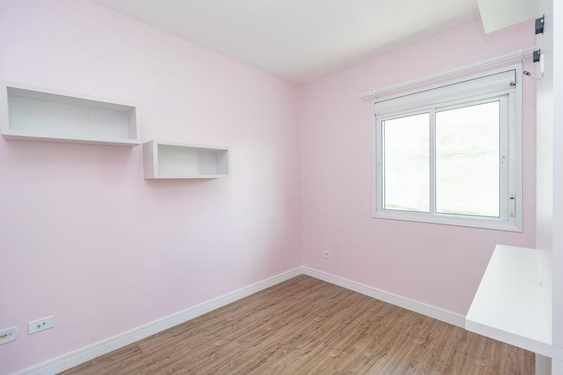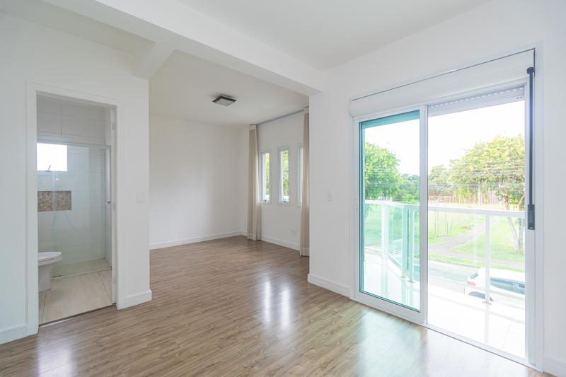– 3 Quartos sendo uma suíte com sacada, um vazio e outro com armários e cama,
