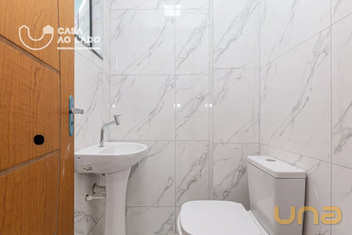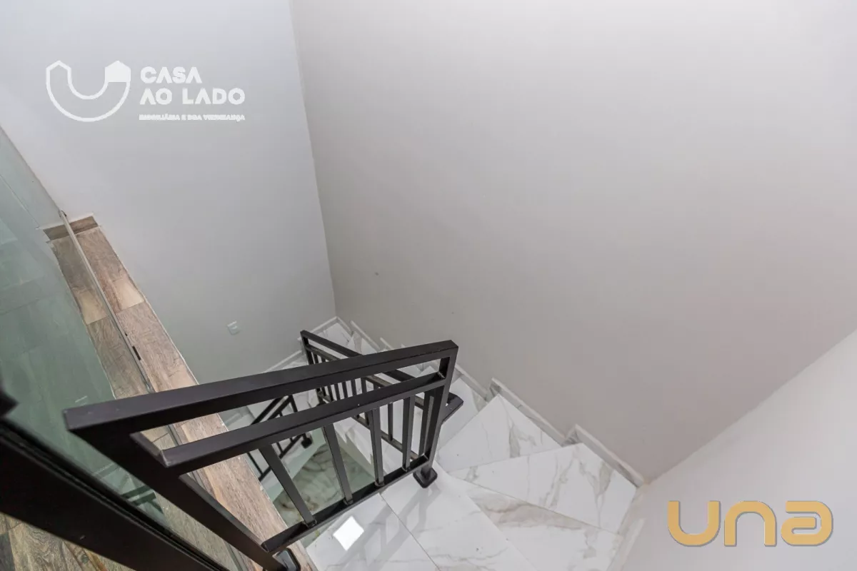 No segundo andar, dispõe de dois quartos amplos e bem iluminados e banheiro social moderno. O imóvel ainda oferece duas vagas de garagem, garantindo mais comodidade para o dia a dia.