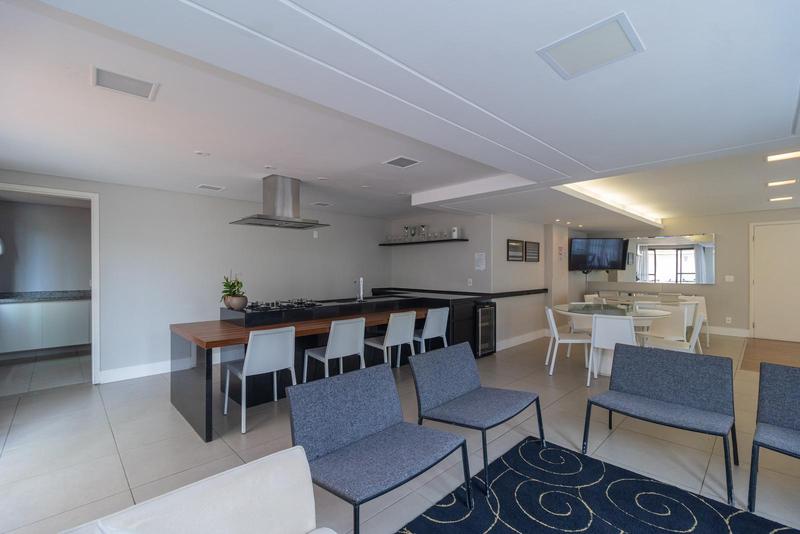 Espaço gourmet, academia, elevador, churrasqueira, piscina, quadra poliesportiva, bicicletario, brinquedoteca, coworking, acesso para deficientes, piscina aquecida e quadra de futebol de salão.