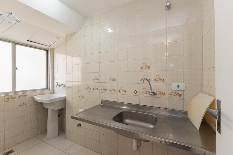 Área de serviço apresentando tanque em louça para suporte às demandas de higienização