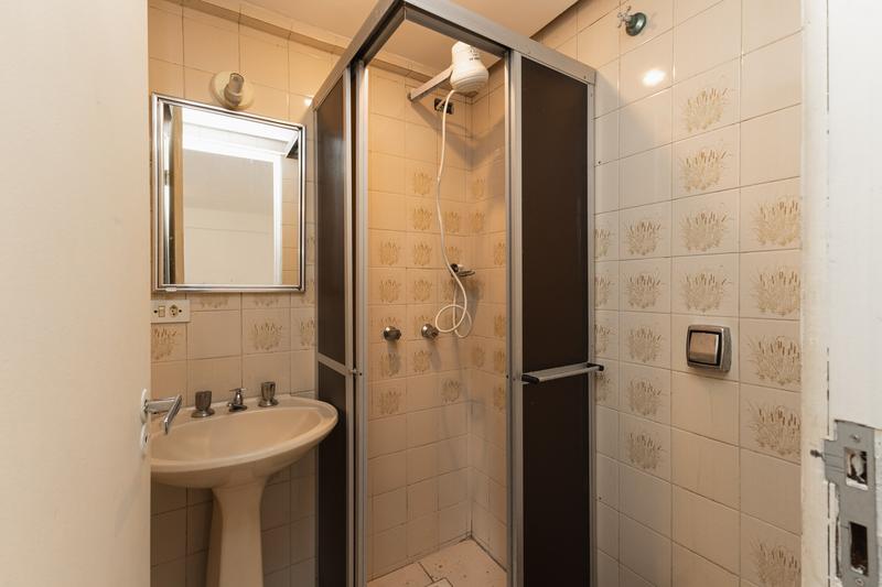 Banheiro social completo contendo box instalado para maior praticidade e higiene