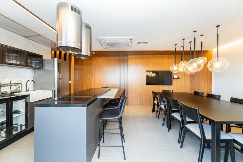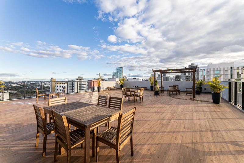 Área  social  possui  Salão de  Festas, Espaço  Gourmet,  Rooftop, Lavanderia, New Pub, Estética (I  e  II ), Home Office,  Bicicletário  e  academia.