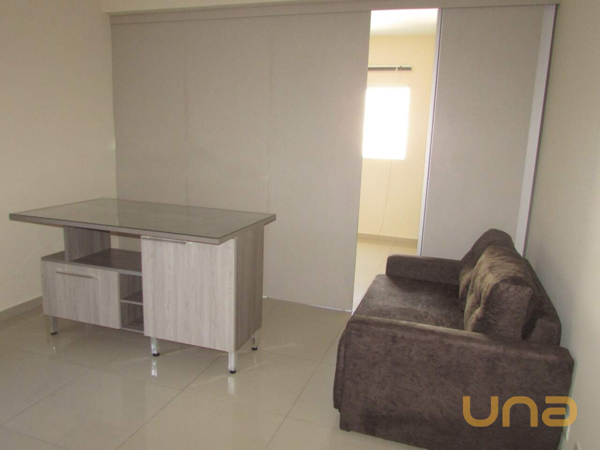 Studio localizado no 2º andar, com área de 37m². Conta com sala integrada à cozinha, equipada com armário, sofá e mesa, além de um quarto com armário e banheiro social. O ambiente é bem distribuído e possui piso em porcelanato, oferecendo praticidade e conforto no dia a dia e dispõe ainda de uma vaga de garagem descoberta.