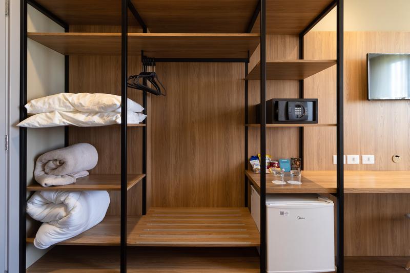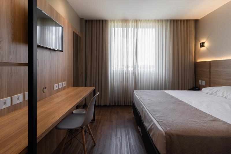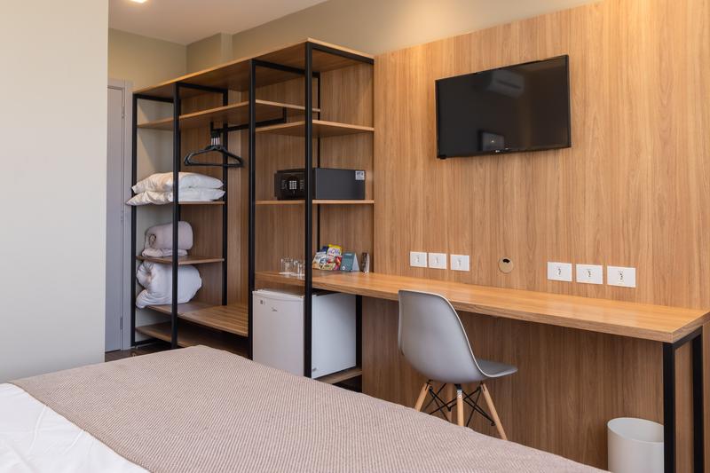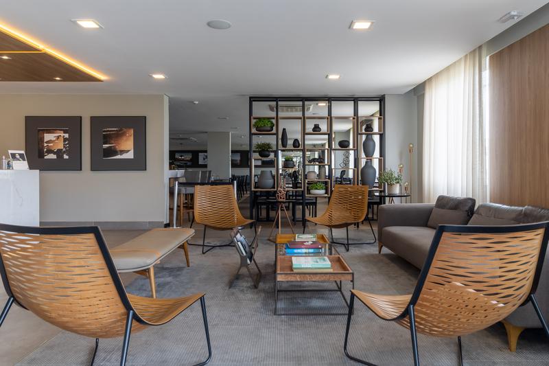 O hotel possui: 3 salas de reuniões/eventos, academia, restaurante para 60 pessoas, 2 vagas para recarregar carros elétricos, 3 elevadores. São 165 unidades/flats no total. Portaria 24 horas.
