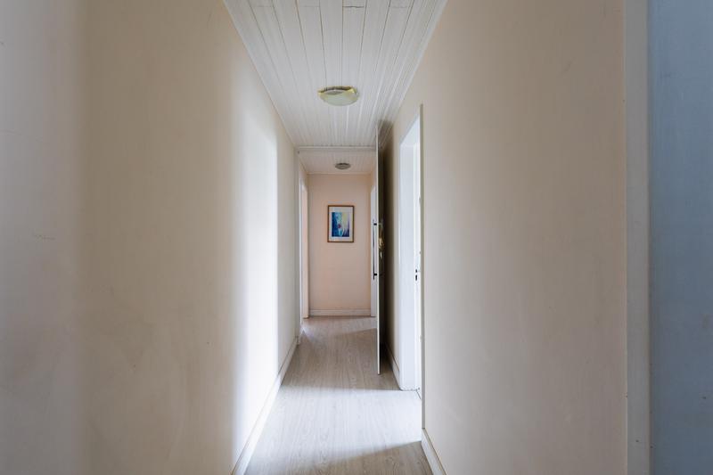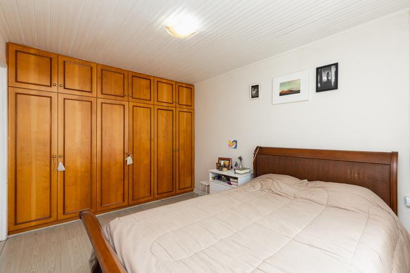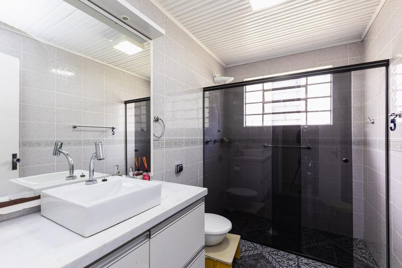 No terreno consta uma residência em alvenaria com área averbada na matrícula de 142,00m² contendo: 3 quartos, sendo 01 suíte, banheiro social, sala de estar, copa, cozinha com armários, área de serviço com banheiro, garagem e uma edícula com banheiro. Armários embutidos em 2 quartos.