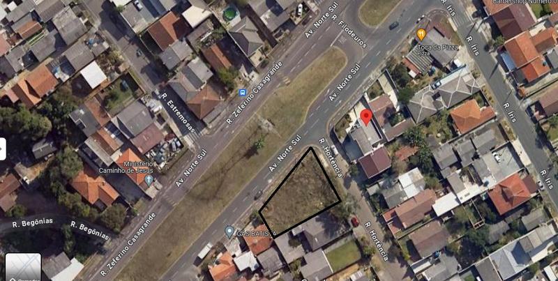 Terreno de esquina medindo 540m² no Jardim Boa Vista em Campo Magro, 30m de frente para a avenida Norte Sul esquina com Rua Hortência.