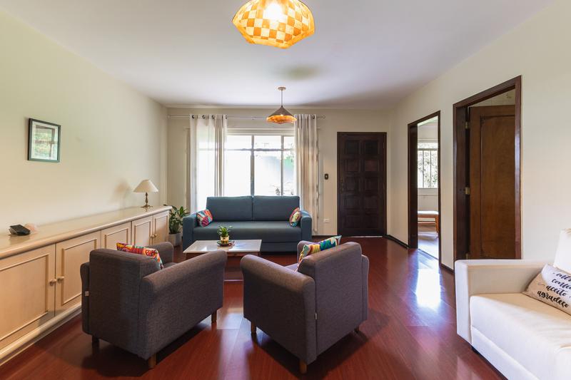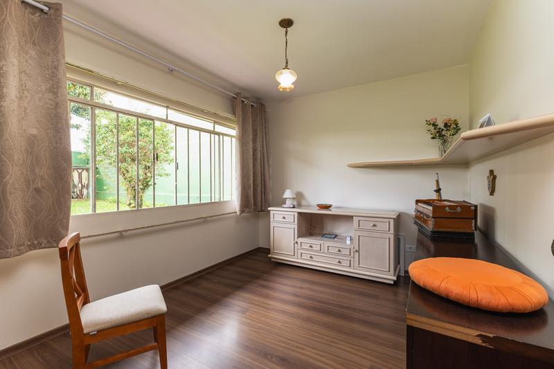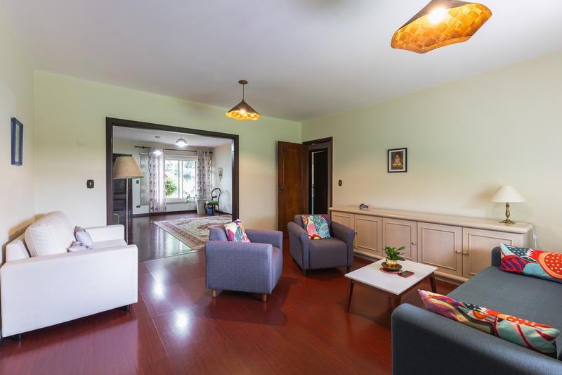 Casa residencial com uma área total e privativa de 181,98m², face Oeste. O imóvel possui 4 salas, sendo uma sala de estar, uma sala de jantar, um escritório e uma sala íntima. A cozinha é ampla e bem equipada, complementada por uma área de serviço e uma dependência completa de empregada. Há 2 quartos além de 1 suíte, totalizando 3 quartos. O imóvel conta com 2 banheiros (exceto suíte) e um amplo banheiro na suíte. A infraestrutura inclui aquecimento a gás e garagem coberta para 1 carro e 2 vagas descobertas, com possibilidade de ampliação.